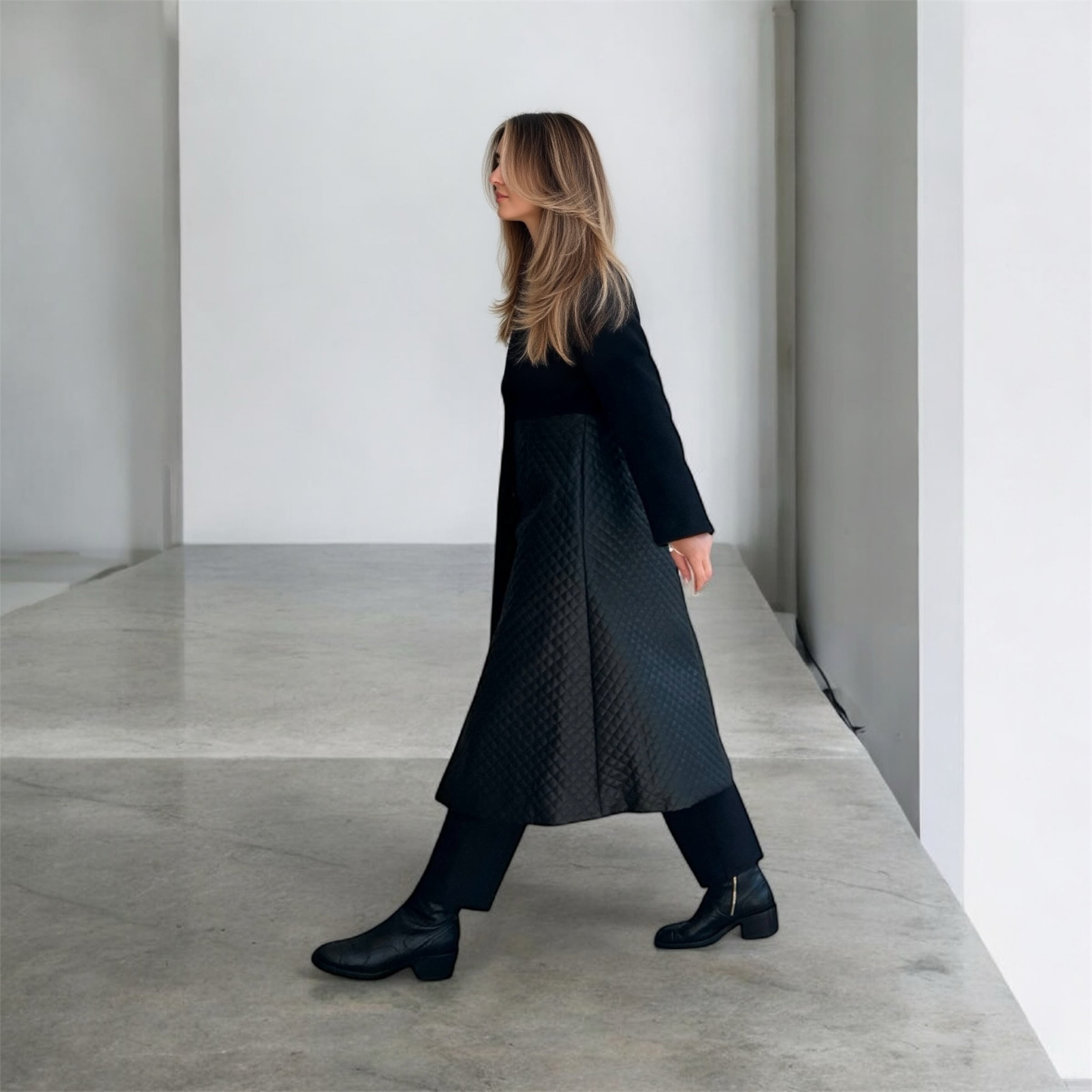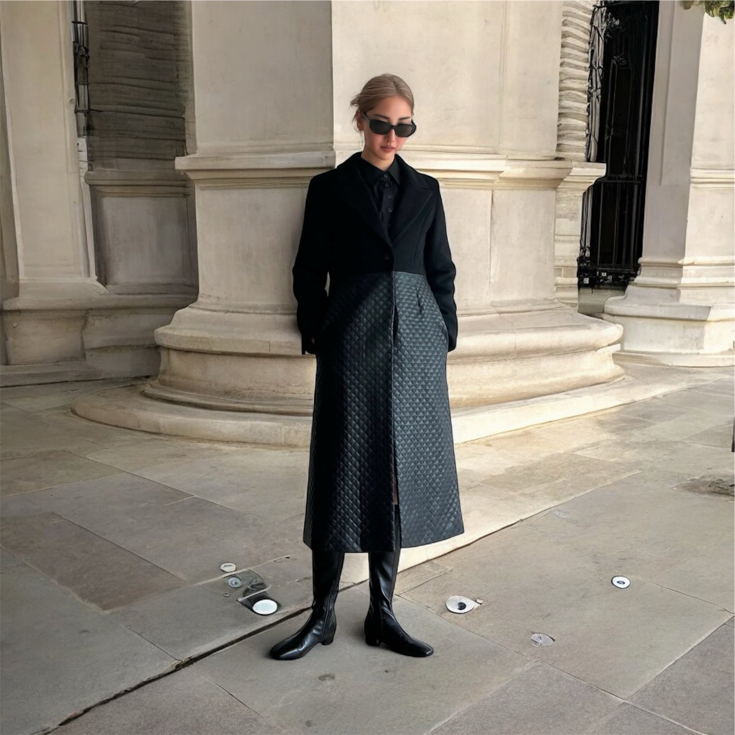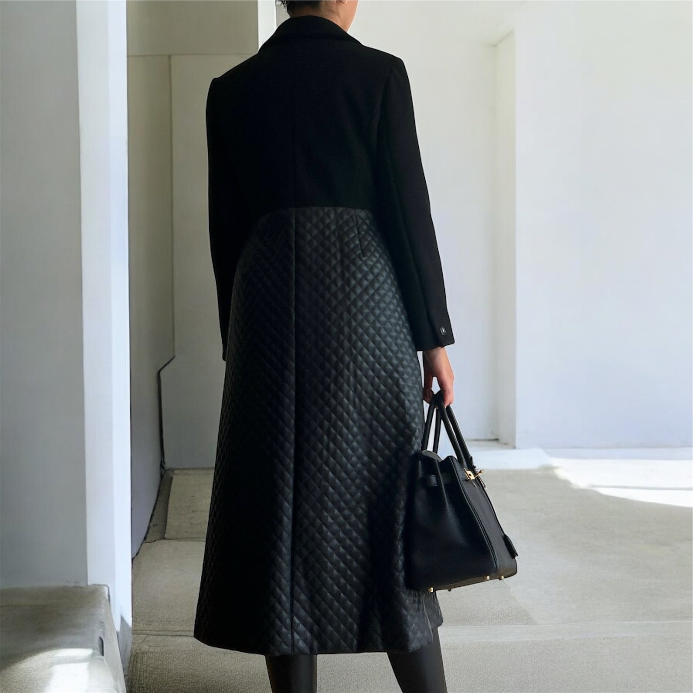 スタンダードなコートにPUキルティングレザーをドッキング。